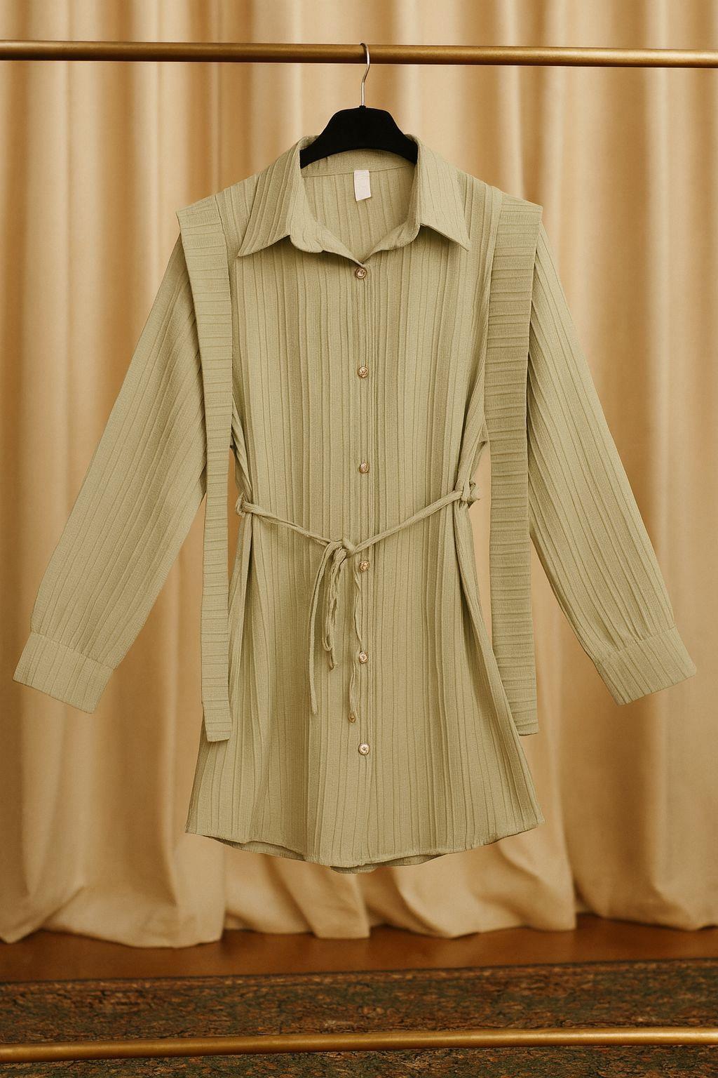Omuzdan Kuşaklı Armürlü Tunik Yeşil (1223)